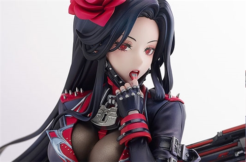 From the popular smartphone game "GODDESS OF VICTORY: NIKKE" comes a scale figure of Maiden, a member of the Extrinsic squad. This figure faithfully captures Maiden's dramatic pose as she lowers her mask to unleash her "Kotodama" skill-complete with the barcode etched on her tongue. Her dynamic skirt, red rose hair accessory, the spikes on her shoulders and boots, and the huge padlock on her neck have all been sculpted with meticulous attention to detail. Maiden's striking features, including her chest and thighs, have been carefully painted and textured to perfectly express her bewitching charm. Be sure to add Maiden to your collection to enjoy a special moment with her!