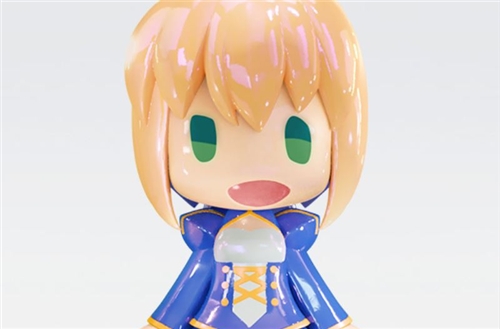 From the "HELLO! GOOD SMILE" series of deformed figures, creatively directed by art director Shigetoshi Koyama, comes Saber/Artoria Pendragon from "Fate/Grand Order" in a sparkling, adorable aurora finish. The neck is movable, allowing you to enjoy posing her.
