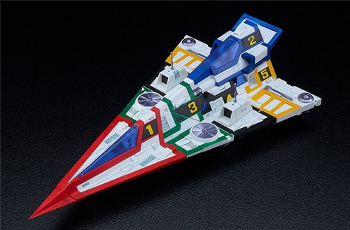 -The impressive model is approximately 330mm in length. The model allows for transformation and combination of the 5 mechs.