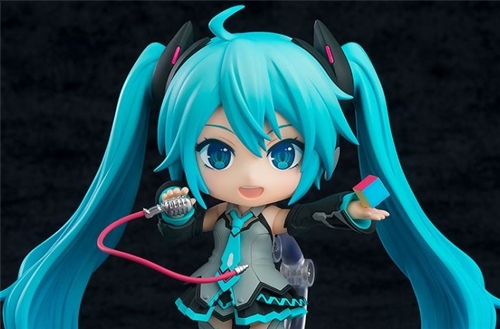 Hatsune Miku has been turned into a Nendoroid in the outfit from the main visual of "Magical Mirai 2014" drawn by MONQ. Facial expressions include a smiling face, singing face, and winking face. Optional parts include a microphone and cube, allowing you to enjoy a wide range of situations, from singing scenes to cute poses.