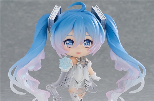 Hatsune Miku from the "Hatsune Miku Symphony 2025 Sapporo Performance" is dressed like a snow fairy. This figure captures her charm with the unique deformed design of Nendoroid. Three facial expressions are included: a smiling face, a dancing face, and a smiling face. Optional parts include a snowflake, and a special pedestal is included as a special bonus item at the Good Smile Company official shop.