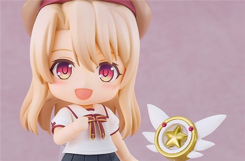 Illya, the main character of the "Prisma☆Illya" series, has been turned into a Nendoroid wearing the summer uniform of the Homurahara Academy Elementary School. Three interchangeable facial parts are included: a "smiling face", a "retort face", and an "excited face". This is a lineup rich in emotions that are typical of Illya. In addition, optional parts such as a "magical ruby" and a "hat" are also included, allowing you to enjoy the figure in a variety of situations.