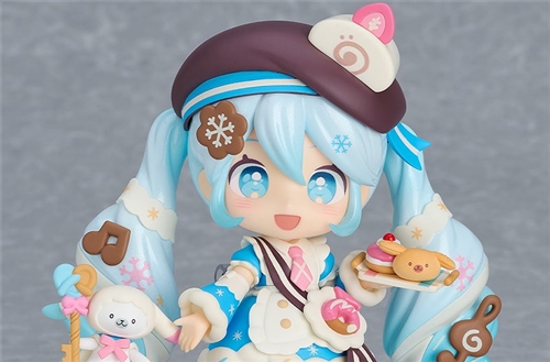 A limited number of Nendoroid figures of Snow Miku, based on the theme of "Happy Patisserie" by cold_air, will be sold at the WONDERFUL HOBBY LIFE FOR YOU!! 40 booth. In addition to the figure itself, the set includes facial parts such as a smiling face, a surprised face, and a relaxed face, as well as optional parts such as Rabbit Yukine and a tray with sweets.