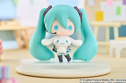 From the "Hatsune Miku x Cinnamoroll" collaboration comes adorable collectible figures of Hatsune Miku and Cinnamoroll! The figures come in a total of five types. Enjoy collecting and displaying them together!
