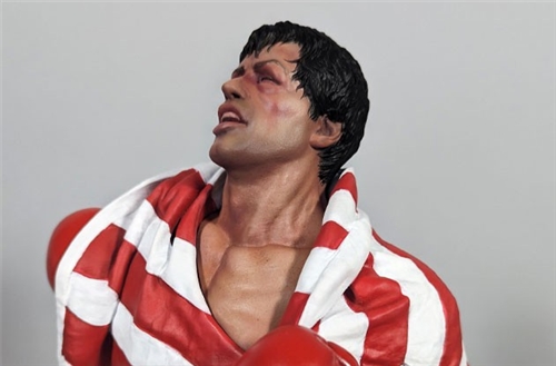 With an authentic likeness of Sylvester Stallone in character as Rocky, it is complimented by a “forged in battle” base!