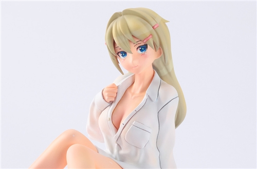 The sight of her wearing a Y-shirt that makes you imagine the situation when she wakes up is so exciting! She is sculpted in a sitting pose, as if she just got up from bed, and the long, slim lines of her legs peeking through her Y-shirt are also beautiful.