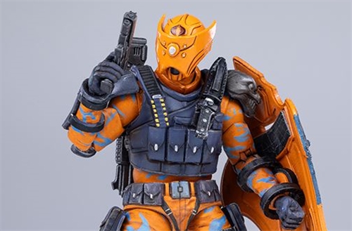 The new EXQUISITE MINI series 1/18 scale Alley Viper action figure stands approximately 10.5cm tall. Based on the original design of the Cobra commander in GI Joe's special forces, it features a reimagined version, recreating this elite unit with a realistic military style. The figure features the iconic orange and blue color scheme, and the helmet retains the original layered structure and openable visor design, with further enhancements in detail for a more realistic overall feel. The chest armor inherits the classic segmented armor design, reconstructed with the logic of modern tactical bulletproof vests, making the equipment layout more functional. The arm guards, shoulder guards, and wrist guards are meticulously detailed, while the knee pads and boots also enhance the metallic texture and mechanical layers.