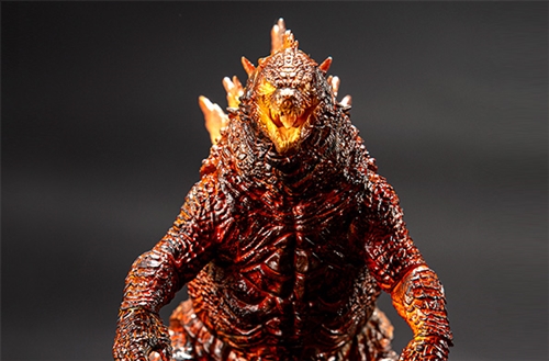 The body is painted in multiple layers to perfectly reproduce the effect of Godzilla absorbing enough energy in the play to continuously emit lava-like heat all over the body,