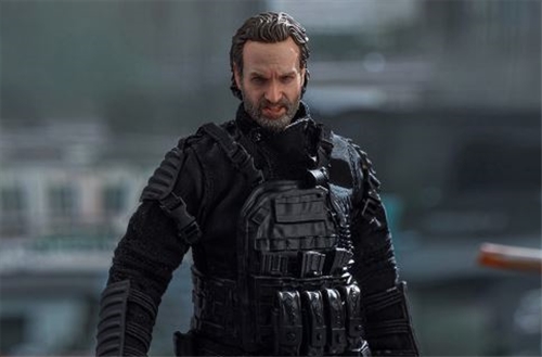 Standing approximately 6.2" tall, this highly articulated figure features Rick in his tactical gear, faithfully capturing the intense facial expression and battle-worn look fans know and love. Included are four signature weapons—an M4A1 rifle, pistol, sword, and hatchet—plus six interchangeable hands tailored to each weapon.