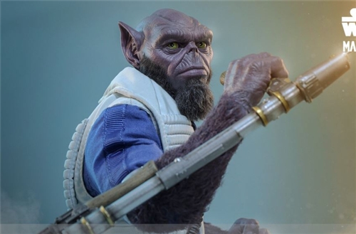 Hot Toys has recreated this distinctive Rebel warrior in 1:6 scale, based on his appearance in the film! This Zeb Orrelios figure features a specially made highly articulated body, stands approximately 33cm tall, and accurately captures his imposing physique. In terms of head sculpt design, the Hot Toys team used exquisite and meticulous sculpting and painting techniques to create a highly realistic character head sculpt, equipped with an independent eye system; Zebu's limbs are made of dense purplish-gray fur crafted from fiber materials, realistically presenting the texture of the fur of the Lasang tribe; the chin beard is made of wool material with meticulous flocking treatment, rugged and realistic, fully showing Zebu's wild charm.