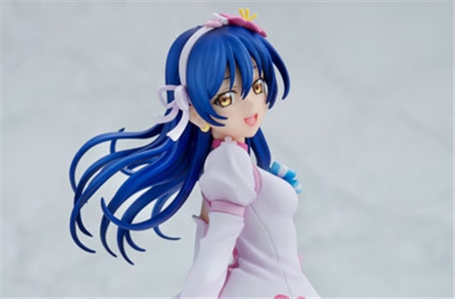 To celebrate the 15th anniversary of the series, Umi has been recreated as a figure clad in her outfit for their popular song "Bokutachi wa Hitotsu no Hikari." It is based on an illustration originally drawn for the TCG, and despite its small size (approximately 165mm tall), it has been meticulously sculpted, making it a captivating reproduction. The display base has a design that incorporates the member's color.