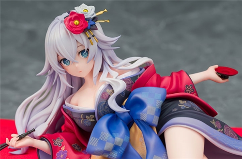 This figure depicts goddess Black Heart playing with soap bubbles and has been crafted with meticulous attention to detail, including the patterns of her kimono, under the supervision of the staff of Compile Heart and Tsunako.