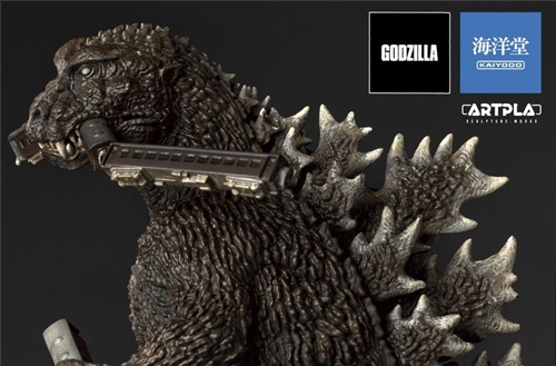"ARTPLA Godzilla Re:Imagination" was prototyped by Shinobu Matsumura, who has worked at Kaiyodo for many years and is known as Japan's top creature modeler. It reinterprets the classic scene 70 years ago when Godzilla first landed in Tokyo and destroyed the railway and chewed on the tram. The shape is not based on the monster costumes used in the movies at the time, but a re-sculpted Godzilla with a more ancient and huge creature feel, presenting the despair emanating from the scene with a vivid biting posture.