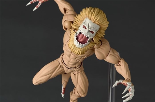 This AMAZING YAMAGUCHI Jaw Titan stands approximately 12.5 cm tall and is modeled after the Jaw Titan from the anime, Jarryd. The sculpted figure perfectly captures his compact frame and muscular build, including a lion's mane-like fur, a hardened face, and the sharp claws on his limbs. The use of Yamaguchi-style articulation allows for a variety of flexible poses, and crucially, the jaw is also articulated, recreating his crushing bite force! The included accessories include two replacement hands with different shapes and a pair of clawed replacement hands with special effects attachments, allowing for flexible movement and recreating powerful attacking poses!