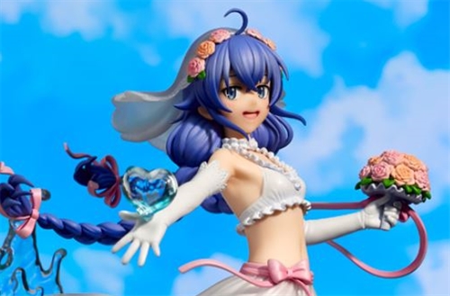 Roxy Migurdia appears in a pure and gorgeous original design swimsuit reminiscent of a wedding dress. As a Saint-class water magician who can control water, Roxy holds a heart-shaped water in her right hand, and a wedding bouquet in her left hand. Also noteworthy are the beautiful gradation of the spray, reminiscent of a summer beach, and the detailed three-dimensional representation of the sandy beach decorated with starfish.