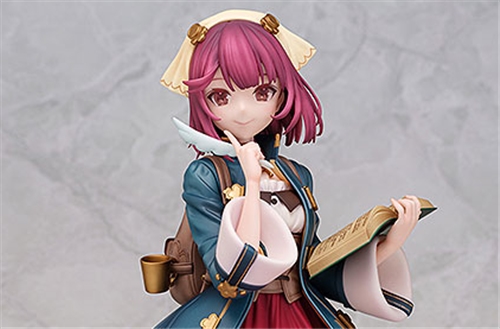 The first figure in the series is Sophie, the main character of "Atelier Sophie: The Alchemist of the Mysterious Book". The figure is a faithful recreation of an original illustration by NOCO, and features Sophie wearing her "Everyday" outfit in a scene from her daily life as she thinks up new alchemy recipes.