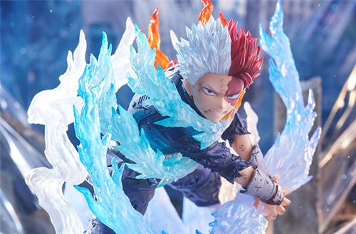 This figure captures the moment when he unleashed his "Cold Flame White Blade" during his deadly battle against Dabi, who is both his enemy and his own brother. From the dynamic posing to the battle-damaged costume and the effects that depict the state in which his Quirk's "Half-Cold" and "Half-Hot" abilities are simultaneously activated, the meticulous details are a highlight.