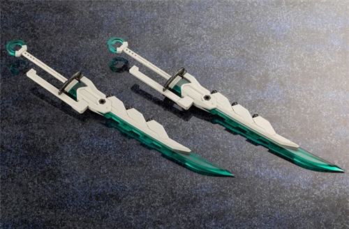 -The body of the sword is modeled in HEXA white and HEXA gunmetal, while the blade is the same clear green as HIDESTORM. These giant but easy to wield swords come in a set of two and are colored to match with a large variety of models.