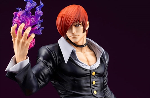 Iori is sculpted in a cold, commanding stance that embodies his mastery of the purple flames.