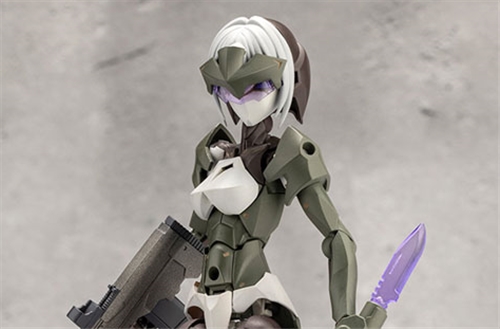The wrists are designed to bend inwards almost 180 degrees which allow the hard point to be brought forward. A combat knife modeled in clear purple can be attached to the left arm, and makes for the perfect accessory for CQC or military-style action poses.