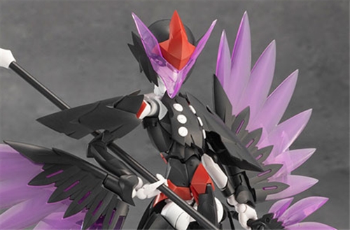 The clear parts designed after a beak can be removed from the visor. The voluminous wings can be flexibly positioned using the large three-point wrist joint, allowing for extravagant action poses.