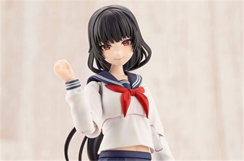 The legs are sculpted with folded-down white school socks, giving her a somewhat retro and sophisticated look. The kit also includes the three original skirts from SOUSAISHOJOTEIEN: Standard, flowing, and sitting with knees to chest. Parts can be swapped out to pose her standing elegantly or sitting down.