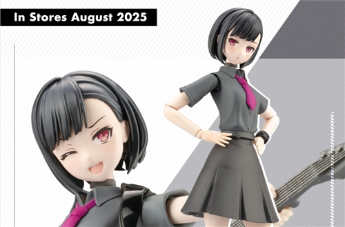 This plastic model of YOMI, a member of the popular girls' band BLACK CANVAS, was born from the idea of "What if Takanashi Reiwa was not a literary girl but a girl who was in a band?" The base kit is "Takanashi Reiwa [Reiho High School, Summer Uniform]", but the tie and box pleat skirt have been newly sculpted, changing her from her uniform to casual clothes. Her neck is also newly sculpted, and she is wearing a choker. Another key point is that it also uses the "movable neck joint" introduced in the swimsuit version, which allows the neck connection position to slide back and forth.