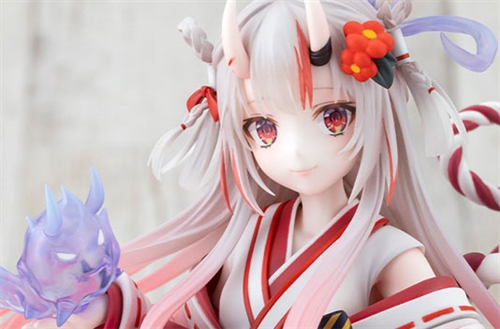 Ayame stands alongside Poyoyo on a base inspired by traditional shrine motifs that perfectly match her outfit.
