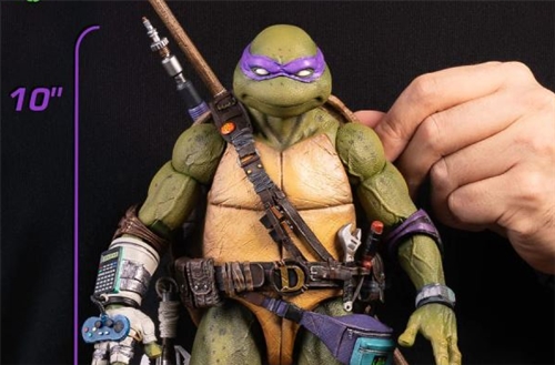 This deluxe version introduces Donatello , the technological genius of the group, with ultra-realistic textures and a wide array of accessories and interchangeable parts, including four alternative portraits , swappable eyes , optional hands , classic and powered weapons , as well as his trusty Mouse-Bro “Newton” and “Magellan” . Also included are the Bo Staff , the electronic E-Bo version with electrical effects , a Grappling Hook , tools and several technological gadgets.