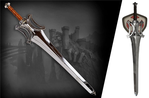 This officially licensed museum quality prop replica remains visually faithful to those original props but has been cast in solid metal to give it the weight and heft of a real-world sword. The blade and guard are formed as a single high-pressure casting, paired with a through-tang construction, a leather-wrapped grip, and a substantial pommel. This prop replica has a strictly limited production run of only 500 pieces worldwide.