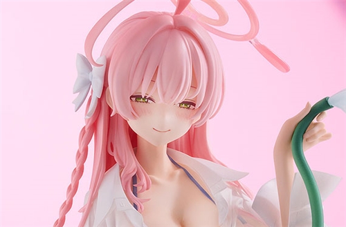 From the popular game "Blue Archive" comes a scale figure of Hanako, a member of Trinity General School's Make-Up Work Club, in her swimsuit! Her wet bikini and skin showing through from underneath her translucent shirt have been faithfully captured in figure form using skillful paintwork techniques. Delicate details, such as Hanako's flowing gradated hair, the splash of water from the hose and the sandy beach-like base, have been carefully brought to life. An adorable interchangeable smiling face part is also included for a different display option. Be sure to add this figure of Hanako in her swimsuit to your collection!