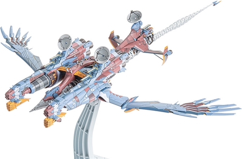 From "Rebuild of Evangelion" comes a plastic model of AAA Wunder, WILLE's main aerial battleship. The model kit is about an impressive 509mm in length and 406mm in width, and packed with details and intricate sculpting. The various parts of the mecha have been separated into nine different colored runners, making it easy to recreate the battleship with a simple assembly. The main armament and antennas are articulated. The rib-like white structures and complicated piping allow for a clear view of the main engine contained within. The dedicated display base allows the battleship to be displayed in either horizontal flight mode or advancing while breaking through the L-Barrier boundary with deep rolls. The main wings and left/right fuselage sections are designed to be removable even after assembly, allowing for easy display and transport.