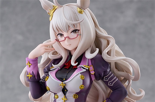 Be awed by the detailed sculpting of her elegant pose, soft hair and tail fluttering in the wind, as well as the carefully recreated details of her outfit, such as the gold buttons. Translucent parts have also been used for her iconic under-rim glasses.