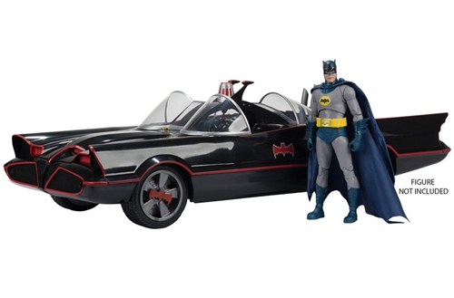 The Batmobile from "Batman 1966 TV Series" is recreated in a spectacular 7-inch scale, measuring approximately 53cm in length! The sculpting and texture are meticulously recreated down to the finest detail. The wheels actually rotate, allowing you to place a 7-inch action figure from the series in the driver's seat for play. The figure comes packaged in a closed box featuring a Batmobile design.