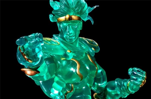 From "JoJo's Bizarre Adventure Part 3", the Stand of the protagonist of Part 3, Jotaro Kujo, "Star Platinum", is now available in a clear version!! The body is reproduced in a translucent clear material with a vibrant green base, and the contrast with the gold decoration creates a beautiful finish.
