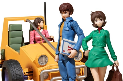 A set of "Earth Federation Forces 07 Amuro Ray & Frau Bow" and "Earth Federation Forces 08 V-SP General Soldier & Buggy." Amuro Ray appears in plain clothes version. By replacing his arm parts, it is possible to reproduce him in two ways: in a jumper or in a yellow shirt. Two types of replacement heads (angry face and screaming face) are included. V strategy file, halo, and hand parts are included, bringing back famous scenes from episode 1.