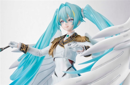 Hatsune Miku, designed by illustrator neco, has been brought to life as part of the "Gundam 45th Anniversary x Hatsune Miku" collaboration project. Dressed in an outfit inspired by "Wing Gundam Zero EW," she wields a baton and her elegant pose is recreated with delicate, voluminous sculpting.