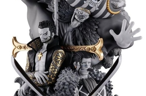 The items on sale this time are monochrome figures with striking golden coloring that accentuates the presence of Buggy, Mihawk, and Crocodile, the main members of the criminal organization "Cross Guild" that appears in the work. In addition, as a bonus for purchasers, one sticker will be given as a novelty for each figure purchased.