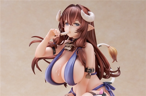 SG's original character "Gyumitsu Toki" has a cool and cute expression as she eats ice cream on the beach. Her large horns, voluptuous bust, cooler box and bottled beer are faithfully reproduced from the motif illustration. The accessories on her neck, upper arms and thighs are also carefully crafted down to the smallest detail.
