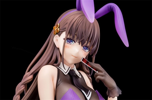 This figure is the 3rd product from the consecutive project of heroine turned to wear bunny costume with Nip Slip Gimmick System. We produce "Elfine Phillet" who is a mademoiselle swearing vengeance against her father, wears flower's purple bunny costume postured and costume designed by Ms. TOHSAKA Asagi. Of course, the workmanship of her bunny costume using many transparent parts is so great, moreover, the special mention of this costume is taking up "Nip Slip Gimmick System". You can flip up her bunny costume's bra part... we made a limit breakthrough gimmick on it. And you can enjoy her voluptuous butt sitting down on the casino table, her sextual body line emphasized by bunny costume, or etc. Take her on your hand and enjoy from various angles.