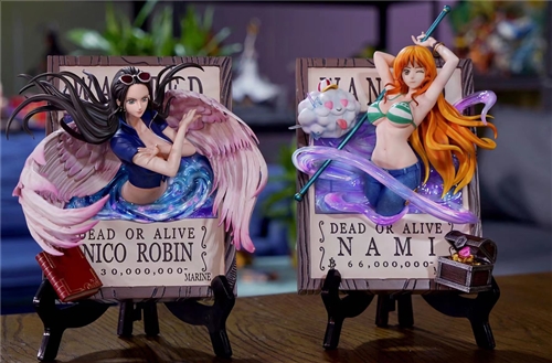 - The character parts are all made of PU, the background board and special effects are mainly transparent pieces, and the layout is painted to restore the paper effect of the pirate wanted frame.