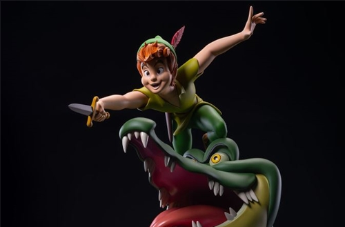 Peter is all smiles even in the face of danger as he playfully flies over the head of the massive croc bursting from the water below. This limited edition collectible is hand painted and individually numbered, and its screen accurate design is worthy of a place in any Disney fans collection.