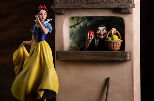 The Deluxe Edition also includes a swap-out portrait and left arm, as well as an accessory of the Evil Queen in her old hag disguise holding out an apple for our Princess. These bonus pieces are exclusive to the Deluxe Edition and allow for even greater storytelling possibilities in your collection. You can even pair this piece with the Disney’s Evil Queen Deluxe Edition Statue (Sold Separately) to create the ultimate Snow White display.