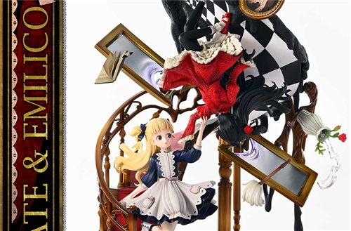 Every detail, from Kate's red, rose hair accessory and white-frilled dress to Emilico’s blue ribbon and her doll companion, Rolly, in her pocket, is carefully crafted to match the characters' appearance in the series. Enjoy their mirrored positions, reminiscent of a playing card, adding to the fun and charm of the set.