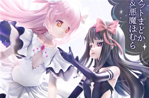 Ultimate Madoka, extending a hand of salvation to all magical girls, and Devil Homura, who defiled the Law of Cycles and claimed the title of a demon. This figure dramatically captures their contrasting forms.