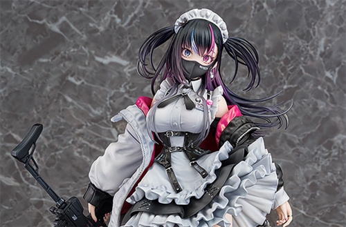 From illustrator Ryosuke Fukai's "ARMS NOTE" series of illustrations comes a 1/7 scale figure of Jirai-chan! The figure features Jirai-chan in her cafe uniform with a submachine gun in hand. Details such as the frills on her flowy skirt, thick jacket, hair, weapon and boots have been meticulously recreated in figure form. Special care has been paid to the paintwork of the lips and eyes for a glossy feel, and translucent parts have been used for the hair for a contrast in textures throughout the figure. Delicate shadows have been added to areas such as the frills of the maid outfit to bring the figure to life. The pink inner layer of the jacket has been painted with pearlescent paint for a vivid finish. An interchangeable winking face plate with shiny pointed teeth is also included, allowing for a different display option. Sweet, toxic, cute and a little scary-be sure to add the charming Jirai-chan to your collection!