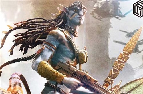 Every detail, from his braided hair and patterned skin to the Na’vi-inspired spear, has been meticulously traced from the film. The cold precision of the grenades reminds us of his human side, while the eyes — one of the film’s most meaningful symbols — received our utmost attention. Each cornea and lens layer has been recreated to achieve the vivid irises that seem to reveal the soul within.