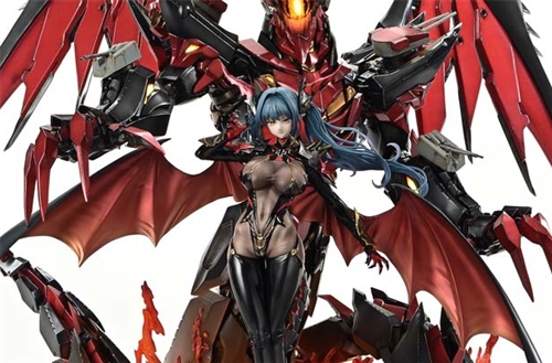 And towering behind her is Regina, the autonomous dragon-type rigging also based on the key visual. With sharply sculpted horns and claws, a subdued metallic sheen in iron black, and LED features across its frame, the massive 66cm construct is brought to life in stunning scale. Display her looming behind Regensburg to deepen the immersion into her world. The statue also comes with an alternate angry expression, a right-hand part, and a head stand—offering customizable display options to suit your style.