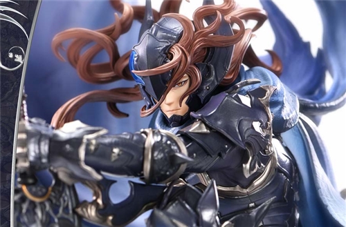 This 1/6 scale statue faithfully brings to life his fully uncapped illustration. From his relaxed pose with one leg raised, to the greatsword grounded beneath his hand, and the cloak spiraling skyward from his back—every element of this bold, anime-inspired composition has been translated into three dimensions with precise adjustments to account for anatomy and gravity.