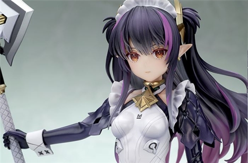Her flowing hair, her powerful and gigantic halberd in hand, and her slender legs stretching out from her maid-style costume are all very appealing! Though her pose is simple, her lightly flowing hair and skirt make for a spectacular finish.